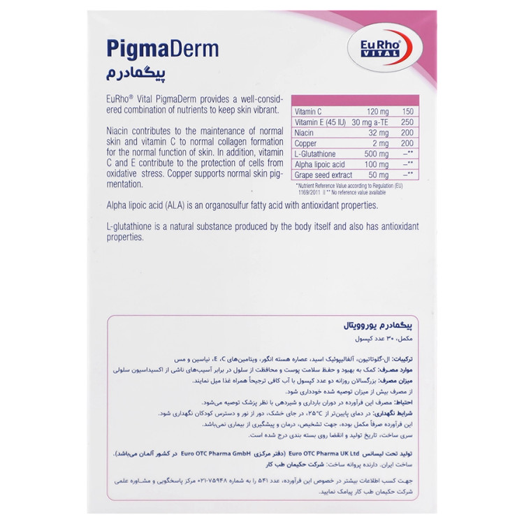 - پیگمادرم، مکملی تخصصی برای کمک به روشن شدن پوست